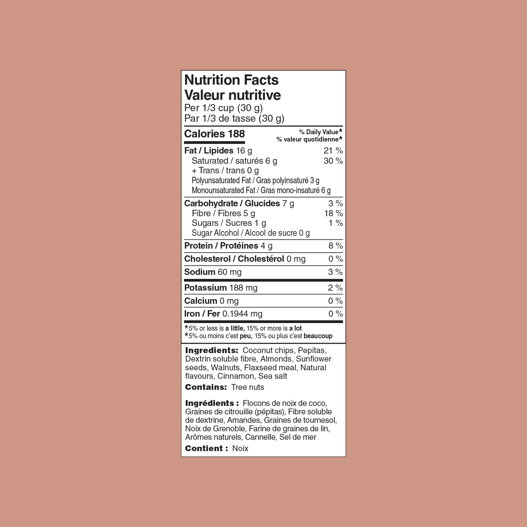 Vous surveillez vos glucides et souhaitez consommer suffisamment de protéines au petit-déjeuner ? Essayez notre granola cannelle-érable ! Un mélange sans céréales composé de noix de coco, d'amandes, de noix, de graines de tournesol et de pépites de chocolat, avec un croquant incroyable et le goût classique de cannelle et d'érable. C'est une excellente façon de commencer la journée !