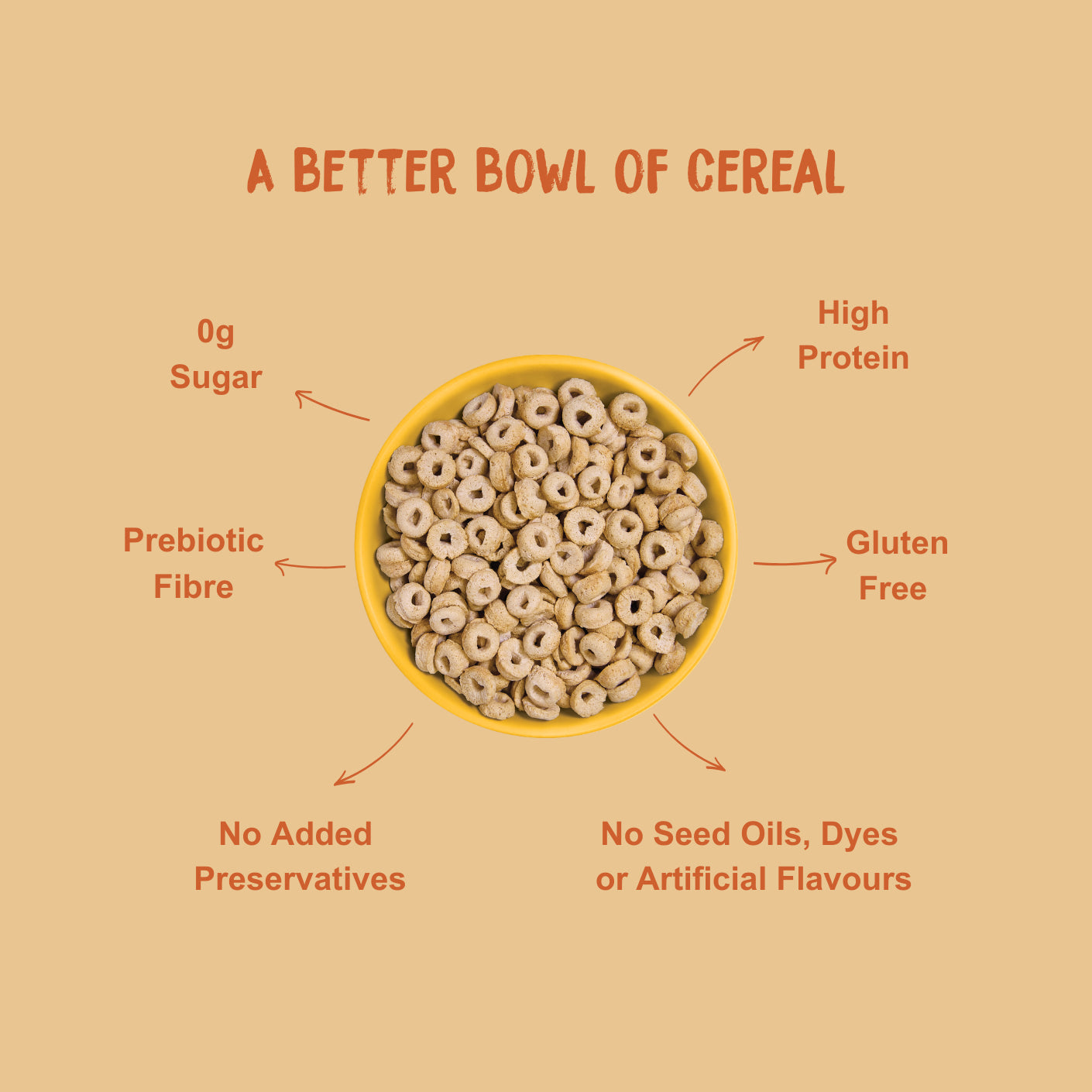 Hidden nutrients in every bite. Honey Os is a delicious blend of nutty sweetness in every spoon! High in protein and fibre, with zero sugar and gluten-free. Honey Os is a sweet start to everyone’s morning.