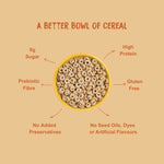 High in plant-based protein and an excellent source of fibre with a taste kids love. Formulated with superior bioavailability, this cereal helps support both gut and brain function 100% delicious.
